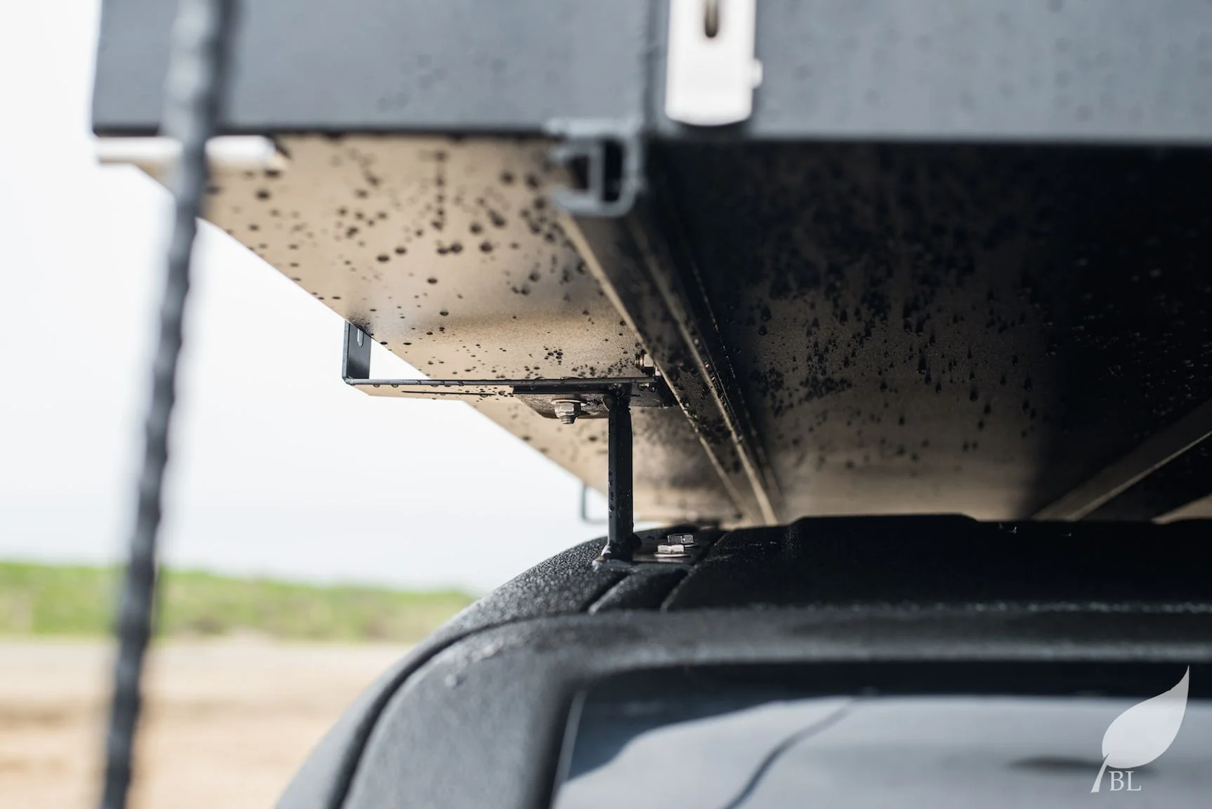 The stealth is a matte black powder coated all aluminum hard shell roof top tent that is as functional as it is sleek perfect for smaller suvs or any overlanding vehicle looking to appear less overt.